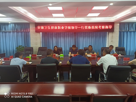 在霍邱县第二人民医院,医院党委书记宋银修、院长冯宣付及相关负责同志就乡村医生培养、医教协同教学等方面进行了深入交谈,双方均表示希望今后加强合作交流。